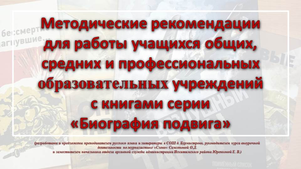 Размещаем дополненные «Методические рекомендации для работы учащихся общих, средних и профессиональных образовательных учреждений с книгами серии «Биография Подвига».