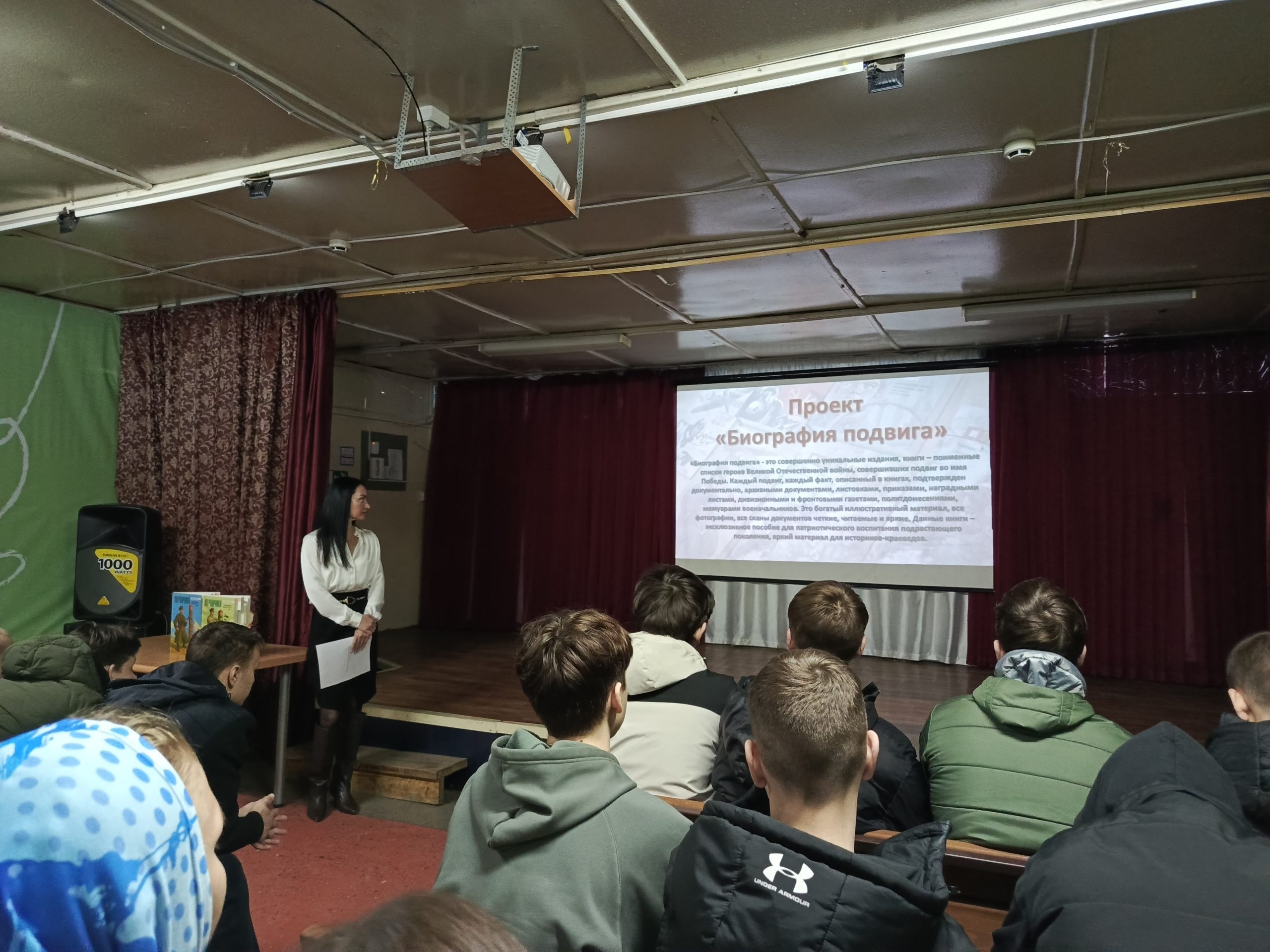 Заместитель начальника отдела архивной службы Елена Юренкова выступила перед учениками 10-х классов с рассказом о том, какие уникальные документы военных лет бережно хранятся в муниципальном архиве. Особое внимание было уделено проекту «Память сердца, которую храним: Биография подвига — Герои былых времён», который позволяет школьникам использовать архивные материалы для подготовки собственных исследовательских и творческих работ по военной тематике.